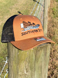Bring the outdoors everywhere you go with our Southern Life Airboat Trucker Hat in a rich brown front paired with a classic black mesh back. This hat features a detailed embroidered airboat design and bold “Southern Life” stitching, inspired by days on the water and true Southern living.